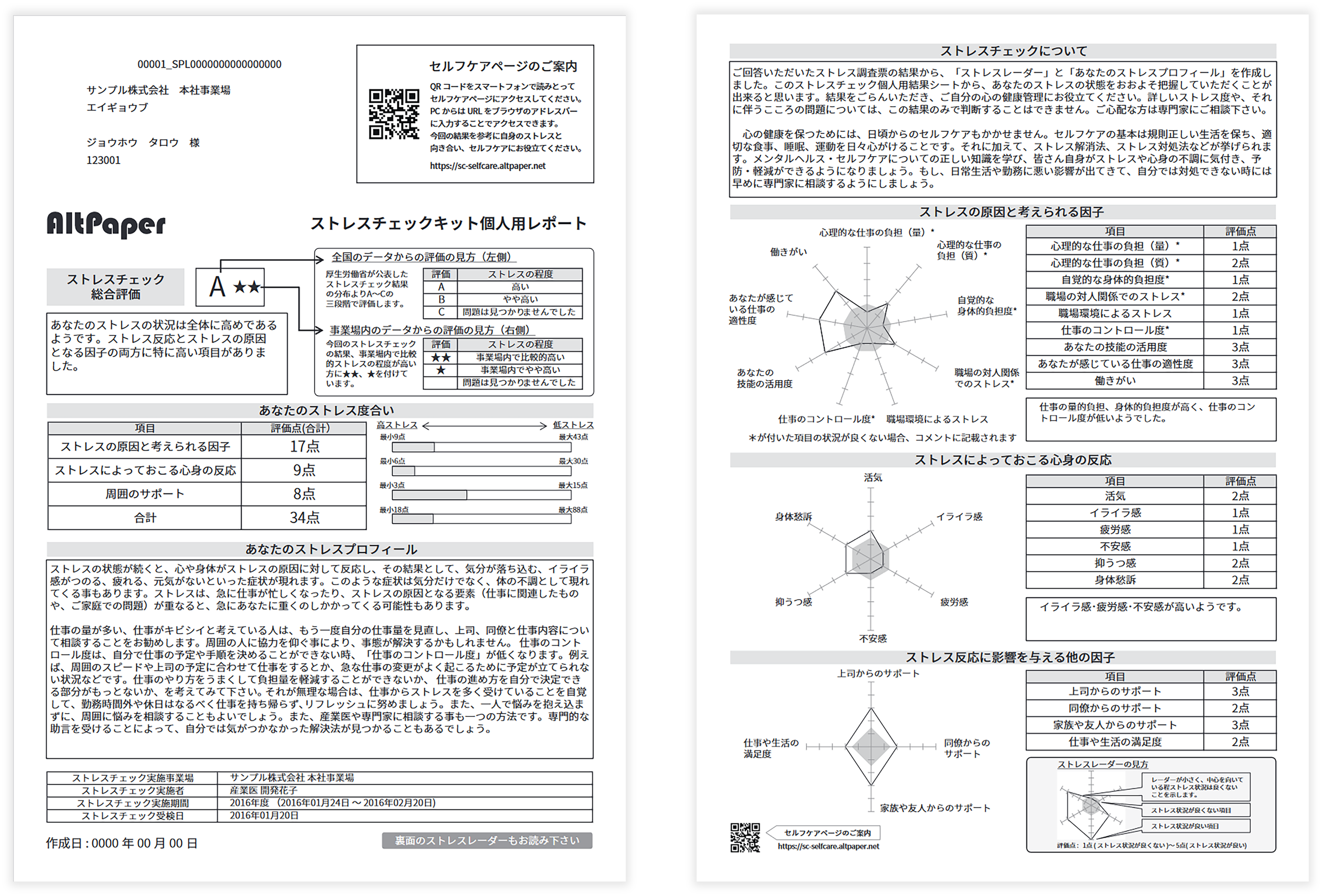 ストレスチェックの個人結果(サンプル)