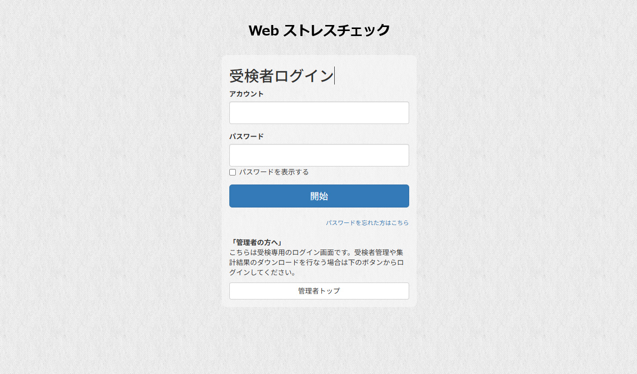 ストレスチェックの受検者ログイン画面